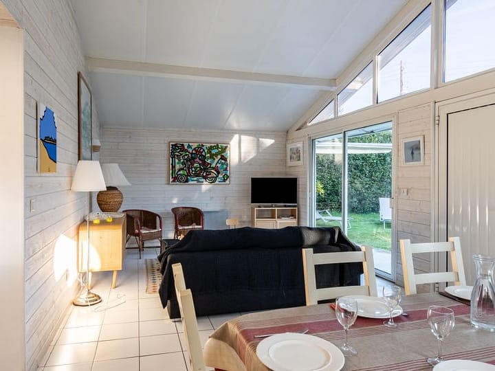 Huis 4-kamers 90 m2. Ruim en licht, comfortabel en mooi ingericht: woon-/eetkamer met TV (Flatscreen TV). Uitgang naar het terras. 1 kamer met 1 2-pers bed (1 x 160 cm, lengte 200 cm), douche/WC en TV (Flatscreen TV). 2 kamers, elke kamer heeft 1 2-pers bed (1 x 140 cm, lengte 190 cm), douche. Open keuken (oven, afwasmachine, 3 inductiekookplaten, broodrooster, waterkoker, magnetron, diepvriezer, elektrische koffiemachine, pads voor de koffiemachine (Nespresso) extra). Aparte WC. Elektrische verwarming. Terras 15 m2, op het zuiden gelegen. Terrasmeubelen, barbecue. Ter beschikking: wasmachine, strijkijzer, haardroger. Internet (Internet (WiFi), gratis). Let op: rookmelders.