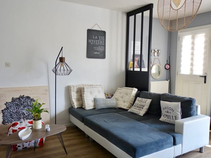Huis in een rij 3-kamers 70 m2 op 2 verdiepingen. Het objekt is geschikt voor 4 volwassenen + 2 kinderen. Mooi ingericht: woon-/eetkamer met 1 2-pers divanbed (1 x 140 cm), TV (Flatscreen TV). Uitgang naar het terras, naar de zitplaats in de tuin. Open keuken (4-pits kookplaat, oven, afwasmachine, broodrooster, waterkoker, magnetron, diepvriezer, elektrische koffiemachine). Aparte WC. Bovenverdieping: (steile trap), 1 kamer met 1 bed (120 cm), 1 x 1 stapelbedden (90 cm). 1 kamer met 1 2-pers bed (1 x 140 cm). Douche/WC. Gas-verwarming. Terras, op het zuiden gelegen. Terrasmeubelen, ligstoelen (6). Ter beschikking: wasmachine, strijkijzer, haardroger. Internet (Internet (WiFi), gratis). Let op: rookmelders.