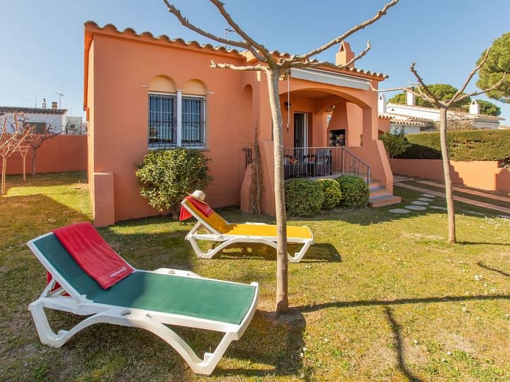 Huis 4-kamers 60 m2, op verhoogde begane grond. Ruim en licht, comfortabel en gezellig ingericht: woon-/eetkamer met eettafel, Digitale TV, Flatscreen TV, homecinema en air-conditioning. Uitgang naar de zitplaats in de tuin. 1 kamer met 1 2-pers bed (150 cm, lengte 200 cm). 1 kamer met 1 2-pers bed (150 cm, lengte 200 cm). 1 kinderkamer met 1 x 2 stapelbedden (90 cm, lengte 190 cm). Groot keuken (oven, afwasmachine, 3 keramische glas kookplaten, broodrooster, waterkoker, magnetron, diepvriezer, elektrische koffiemachine). Bad/bidet/WC. Boiler (75 liter). Ruime zithoek in de tuin 150 m2, gedeeltelijk overdekt. Terrasmeubelen, barbecue, ligstoelen (2). Uitzicht op de tuin. Ter beschikking: wasmachine, strijkijzer, haardroger. Let op: TV alleen ES. HUTG007012