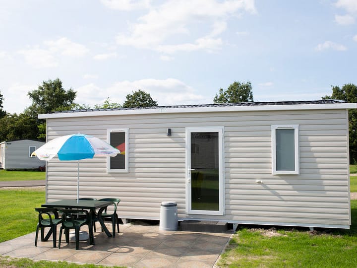 “4 persoons”, 3-kamers mobilhome 30 m2. Comfortabel ingericht: woon-/eetkamer met eettafel en Flatscreen TV. Uitgang naar het terras. 1 2-pers. kamer met 1 2-pers bed. 1 2-pers. kamer met 2 bedden. Open keuken (4 kookpitten (vlammen), magnetron, elektrische koffiemachine). Douche, aparte WC. Verwarming. Terras. Terrasmeubelen. Parkeerplaats bij het huis. Let op: rookvrij huis. Maximaal 2 huisdieren/honden toegestaan. Rookmelders. Indien er een huisdier wordt meegenomen geldt er naast de kosten van het huisdier, ook € 10 euro extra schoonmaakkosten ter plaatse te betalen.