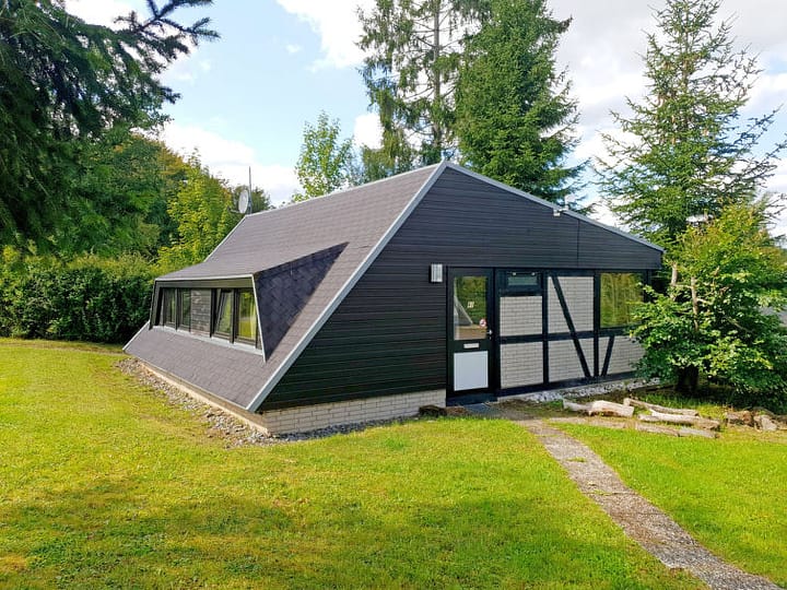 “Haus 41”, bungalow 4-kamers 60 m2. Gedeeltelijk afgeschuinde daken, gezellig ingericht: woon-/eetkamer 30 m2 met open haard en Sat-TV. Uitgang naar het terras. 1 kamer 9 m2 met 1 2-pers bed (160 cm, lengte 190 cm). 1 kamer 6 m2 met 2 bedden (80 cm, lengte 190 cm). 1 kamer 6 m2 met 1 bed (80 cm, lengte 190 cm). Kleine, open keuken 5 m2 (4-pits kookplaat, magnetron, elektrische koffiemachine). Bad/douche/WC. Elektrische verwarming. Terras 10 m2 gedeeltelijk overdekt. Terrasmeubelen. Ter beschikking: haardhout (extra). Internet (Internet (WiFi), extra). Let op: rookvrij huis. Maximaal 2 huisdieren/honden toegestaan. Rookmelders.