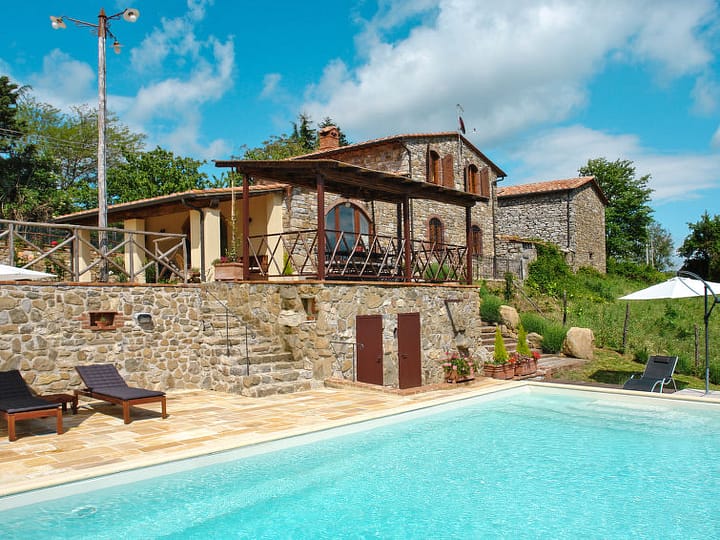 “Villa Le Lame (MTI150)”, huis 6-kamers 170 m2 op 2 verdiepingen. Smaakvol en gezellig ingericht: woon-/eetkamer met panoramavenster met open haard, eettafel en Sat-TV. Uitgang naar de veranda. 2 kamers, elke kamer heeft 1 2-pers bed en douche/WC. Open keuken (2-pits kookplaat, oven, afwasmachine, 6 kookpitten (vlammen), diepvriezer, elektrische koffiemachine). Aparte WC. Bovenverdieping: 1 2-pers. kamer met douche/WC. 1 kamer met 2 bedden. 1 2-pers. kamer. Douche/WC. Gas-verwarming. Terras. Terrasmeubelen, ligstoelen. Panoramazicht op het landschap. Ter beschikking: wasmachine, kinderstoel, kinderbed. Internet (Internet (WiFi), extra). Let op: niet rokers woning. 2 huisdieren/honden toegestaan. Als er minder dan het maximale aantal gasten in de accommodatie verblijft, zijn niet alle slaapkamers beschikbaar voor gebruik.