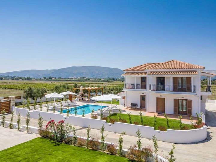 “Melograno I”, villa 6-kamers 165 m2 op 2 verdiepingen. Modern ingericht: woon-/eetkamer met Sat-TV (Flatscreen TV), air-conditioning. Uitgang naar de tuin, naar het terras, naar het zwembad. 1 groot 2-pers. kamer met 2 bedden en air-conditioning. Uitgang naar de tuin. 1 kamer met 1 2-pers divanbed en air-conditioning. Keuken (oven, afwasmachine, 4 keramische glas kookplaten, broodrooster, waterkoker, magnetron, elektrische koffiemachine). Uitgang naar de tuin. Douche/WC. Bovenverdieping: (trap zonder leuning), 1 groot 2-pers. kamer met 1 2-pers bed, bad/douche/WC en Sat-TV (Flatscreen TV), air-conditioning. Uitgang naar het balkon. 1 2-pers. kamer met 1 2-pers bed en Sat-TV (Flatscreen TV), air-conditioning. Uitgang naar het balkon. 1 2-pers. kamer met 2 bedden en Sat-TV (Flatscreen TV), air-conditioning. Uitgang naar het balkon. Douche/WC. Terrasmeubelen, barbecue. Zeer mooi uitzicht op het zwembad, de tuin en het landschap. Ter beschikking: wasmachine, droger, strijkijzer, haardroger. Internet (Internet (WiFi), gratis). Let op: rookmelders, brandblusser. 1047448