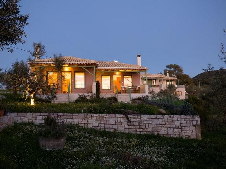 “Iliodili”, bungalow 2-kamers 43 m2. Comfortabel en mooi ingericht: open woon-/slaapkamer met 1 divanbed, 1 opklapbed en TV (Flatscreen TV). Uitgang naar het terras. 1 open 2-pers. kamer met 1 2-pers bed. Kleine, open keuken (3-pits kookplaat, mini-oven, elektrische koffiemachine). Douche/WC. Houtverwarming, air-conditioning. Klein terras overdekt. Mooi uitzicht op zee en het landschap. Ter beschikking: Internet (Internet (WiFi), gratis). Let op: rookvrij huis. 1249Κ91000250400