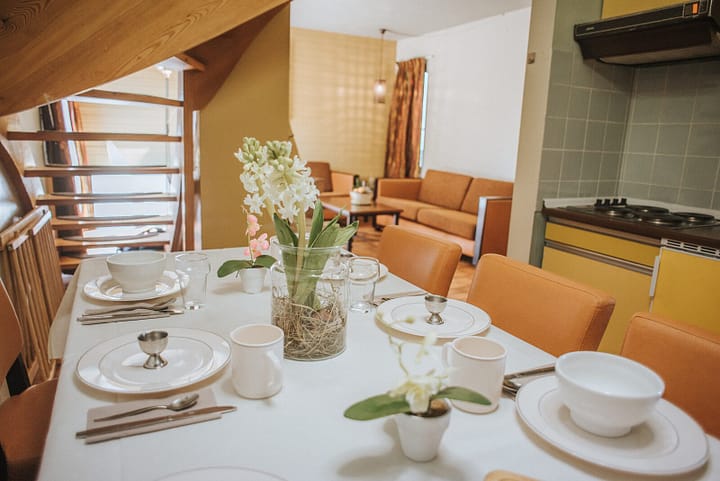 Geschakelde bungalow voor 6 personen, eenvoudig ingericht.