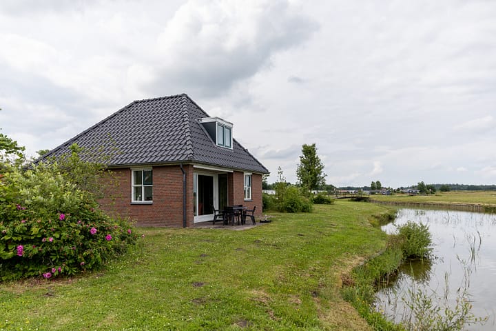 Buiten op het terras heeft u de beschikking over tuinmeubilair met een parasol. De bungalow beschikt over een inpandige berging. Deze accommodatie is aan het water gelegen.