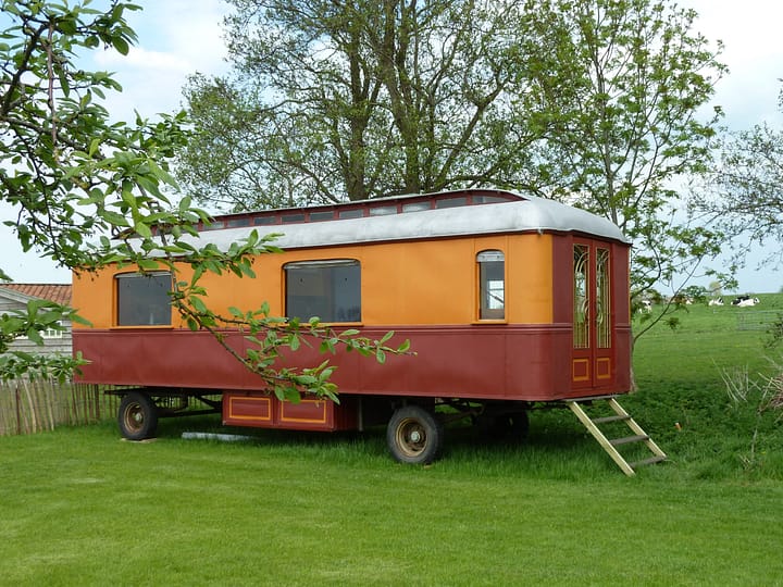Dit natuurhuisje, een circuswagen van het Circus uit Gent, staat inmiddels naast het erf van de verhuurders. Het heeft een slaapkamer met een tweepersoonsbed, een woonkamer met houtkachel en een klein keukentje bij de ingang. De wagen heeft elektriciteit en een klein gasbrandertje. In de houten schuur op het erf is ook een mooie keuken met fornuis, oven en koelkast waar de gasten gebruik van kunnen maken. Tevens zijn daar de sanitaire voorzieningen. Dit is ongeveer 50 meter van de wagen. In de weide staat ook een ander natuurhuisje. Soms zijn er ook gasten met een tent. Op de boerderij naast de weide is een kleine boerderij. Een aantal dagen in de week is de boerderij een kleine “zorgboerderij”. De gasten van de weide kunnen in overleg ook gebruik maken van de vuurschaal die op het weiland achter de boerderij staat.Deze zomer (2023) zijn wij bezig met de herbouw van het woonhuis met aanliggende stal. Het achtererf heeft hier geen zicht op. Koel-/vriescombinatie