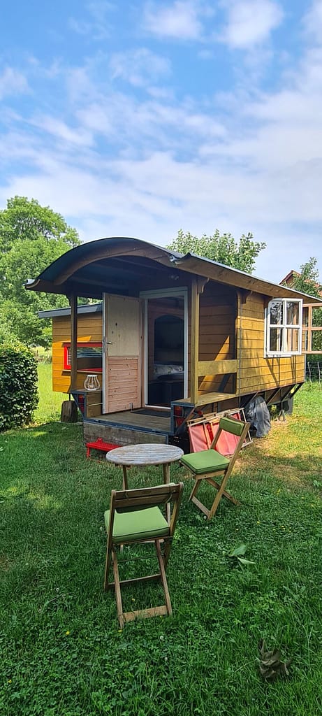 De circuswagen is voorzien van een overdekte veranda, heeft een compleet nieuw, smaakvol en ecologisch interieur met verlichting, uitschuifbare tafel en een kleine opbergplank. Met de toevoeging van een stapelbed heeft de circuswagen een tweepersoonsbed voor 2 personen. De circuswagen staat op een grote schapenweide, tussen oude fruitbomen, beukenhagen en bessenstruiken, direct aan de Elbedijk. Er is een aparte keuken op het terrein waar gasten hun maaltijden kunnen bereiden. De douche, wc en sauna bevinden zich buiten en in de onmiddellijke nabijheid van de woonwagen – je kunt de sterren zien tijdens het douchen. Een grote luifel beschut de zithoek.