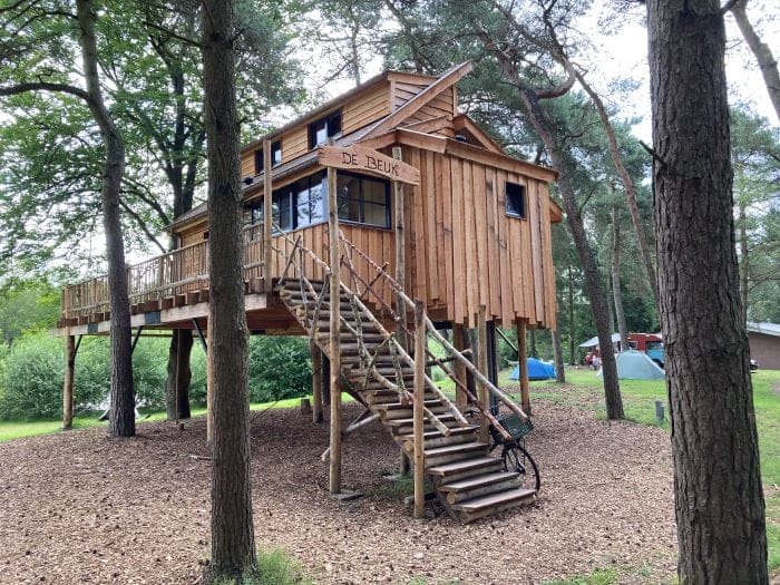 Is het nog wel een boomhut, of is het een boompaleis. Hoe u het ook mag benoemen, hier speelt beleving de centrale rol. Recreëren op hoogte, een prachtig uitzicht, een fantastisch balkon/terras, wat gedomineerd wordt door een enorme beuk er doorheen, en een verrassende binnenruimte zijn de kenmerken van dit spannende verblijf. Maar dan wel met het gemak van een keuken en badkamer met douche en toilet. De Beuk heeft een woon/eetruimte met open keuken, één ruime slaapkamer met een twee persoons hemelbed, en een slaapvliering waar 4 één-persoons bedden (kooien) staan. Er is ook een badkamer met wastafel, douchecabine en toilet. De Boomhut is stoer ingericht met ruwe natuurlijk materialen en verrassende accessoires. Hier komen dromen uit, want wie wil er niet ooit in een boomhut slapen?