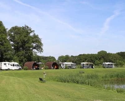 Sinds maart 2021 hebben wij twee luxe pods, halfronde, houten vakantiehuisje met openslaande deuren om in te kamperen. De pods bieden je in alle seizoenen een knus verblijf in combinatie met het actieve buitenleven op het landgoed. De pods zijn ingericht voor 2 personen en voorzien van opgemaakte bedden bij aankomst. De pods beschikken verder over een keukenblokje, zithoek met luxe stoelen, tweepersoonsbed (160x200cm) en een terras met schitterend uitzicht. In de pods mag niet gerookt worden en zijn er geen huisdieren toegestaan.