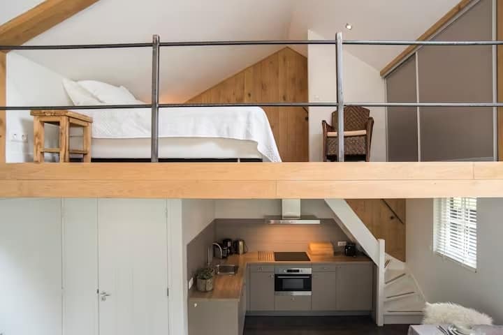 Op een van de mooiste locaties overnachten! Onze natuurhuisjes worden begrensd door duinen, bos, polder. Recht tegenover Het Woud begint een prachtig bos- en duingebied van vijf kilometer breed, dat een natuurreservaat is en uitsluitend toegankelijk voor wandelaars en fietsers. Onze landelijke appartementen zijn voor twee personen ingericht, de slaapkamer op de bovenverdieping kijkt door de open vide uit op de woonkamer die modern en gezellig is. De badkamer is op de benedenverdieping, voorzien van wastafel, massagedouche en toilet. De keuken is voorzien van alle gemakken van deze tijd, o.a. een magnetron/oven, koelkast en een afwasmachine. De open keuken grenst aan de woonkamer, met openslaande deuren naar uw privéterras waar u in alle privacy van de omgeving en de zon kunt genieten. Voor uw auto hebben we voldoende parkeergelegenheid. De prijs van de appartementen is inclusief beddengoed, handdoeken, toeristen belasting, gas, water en licht.