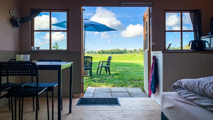 Logeren bij een boerderij is genieten van schitterend uitzicht. Wakker worden met het geluid van vogels. Spelen in ons bos en op het veld. Onze pony knuffelen. Luieren bij de poel met zwaluwwal. En dicht bij nationaal park de Groote Peel. Het huisje bestaat uit 1 ruimte met 1x 2 persoonsbed en 1x bankbed. Inclusief beddengoed. Verder is er een eettafel met 4 stoelen en keukenblokje met serviesgoed, senseo, waterkoker, koelkast, oventje en 1 pitje om beperkt te koken. Keukendoeken aanwezig. Sanitair bevind zich in het gebouw nabij het huisje. Hier bevind zich gedeeld toilet, douche en wastafel. Geniet van je eigen terras. Barbecue ter beschikking.