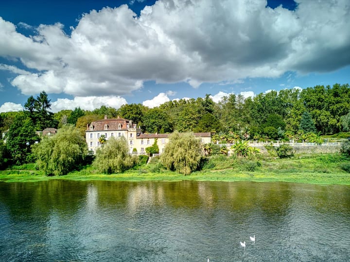 Een luxe badkamer met ligbad, regendouche en badkamermeubel met wastafel en een apart toilet maken het beeld compleet. Via de hal heeft u toegang tot een heerlijk privé-zonneterras(40m2) met terrasmeubilair, direct gelegen aan het zwembad. Vanaf dit terras heeft u een prachtig uitzicht over de Dordogne rivier.