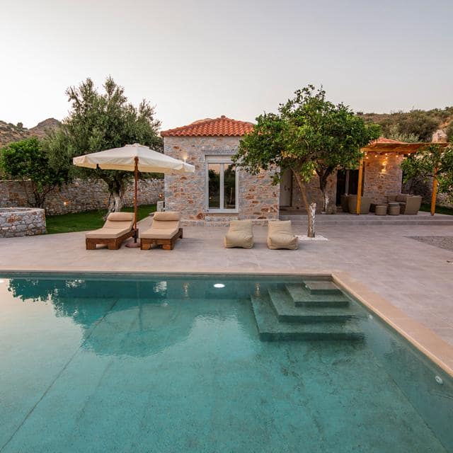 Ook valt direct het bohemian interieur op. Zowel binnen als buiten is de villa smaakvol ingericht, met natuurlijke materialen en lichte kleuren. Het past perfect bij een omgeving als deze. Verder draait het hier vooral om genieten. Maak een verfrissende duik in het zwembad zodra je wakker wordt en voel de eerste zonnestralen op je neerdalen. Dit moment is magisch! Zin om de hele dag bij de villa te vertoeven? Ga dan lekker liggen in de hangmat of op een ligbed en neem tijd voor jezelf. Wedden dat je batterijtje zo weer is opgeladen? Meer zin in een leuk uitstapje? Wandel dan naar het strand of pak de auto en ontdek de ongerepte havenplaatsjes en azuurblauwe baaien van Mani.