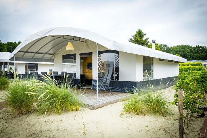 Kom heerlijk luxe kamperen in de Tentvilla met eigen sanitair en keuken.