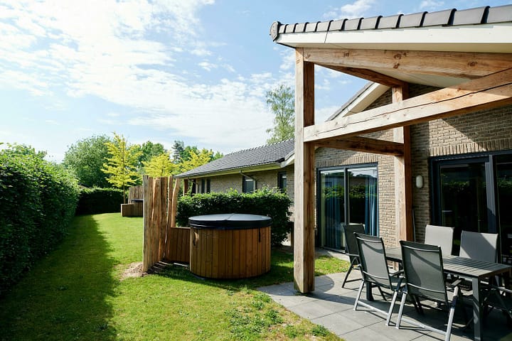 Buiten tref je een ruim terras met terrasmeubilair voor 4 personen én een luxe Privé Jacuzzi. Hier geniet je van veel rust en privacy. Jouw verblijf in Villa Vogelveld is inclusief WiFi én vanzelfsprekend centrale verwarming. Je kunt jouw auto bovendien kosteloos parkeren bij het vakantiehuis voor 4 personen met jacuzzi.