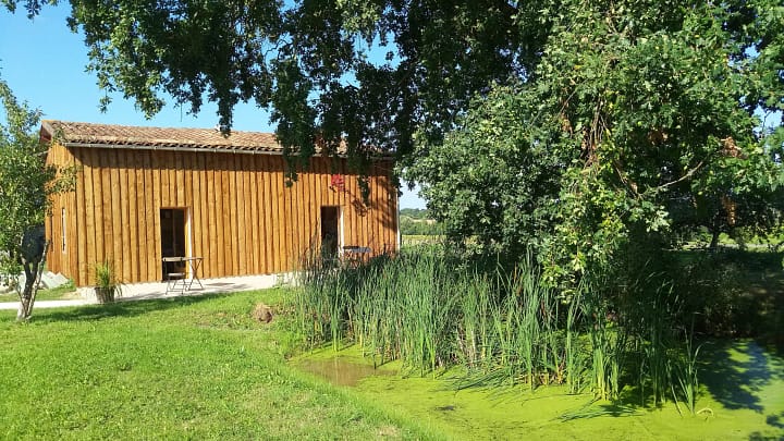 60m2 huis met groot terras en tuintafel. Geniet van het uitzicht over de tuin. Gratis privéparkeerplaats op het terrein. Dit huis heeft een keuken met vaatwasser, gaskookplaat, oven en filter en Senseo koffiezetapparaat. Er is een slaapkamer met een tweepersoonsbed (140cm), een slaapkamer met een tweepersoonsbed (160cm x 200cm) en een tv, een zitkamer en een badkamer met een grote inloopdouche. Er is ook een flatscreen-tv in de woonkamer. De WiFi-verbinding is uitstekend en gratis (glasvezel). Tuin van 4270 m2 met fruitbomen, vijver en “guinguette”. Stoelen en tafel buiten, ligstoelen beschikbaar. Tweede zithoek bij de “guinguette” met gasbarbecue. Alle beddengoed aanwezig, op verzoek verschoond. Wasserij ter plaatse beschikbaar.