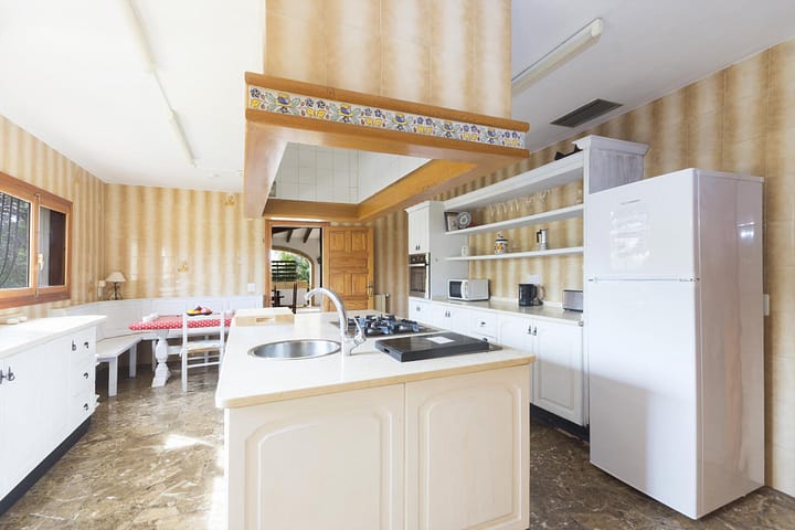 Grote en comfortabele villa in Javea, aan de Costa Blanca, Spanje met privé zwembad voor 14 personen. De woning ligt in een woonwijk en ongeveer 2 km van het strand van El Arenal, Javea.