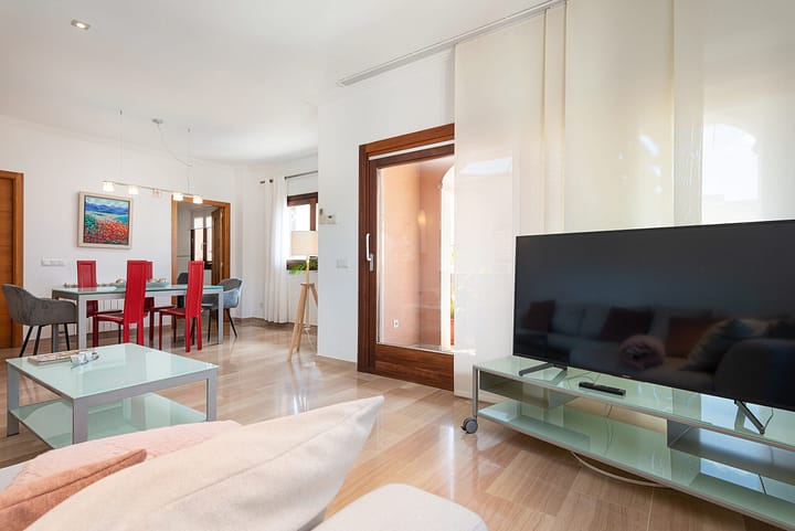 Dit charmante herenhuis valt op door zijn prachtige exterieurontwerp, inclusief een patio, een balkon en een terras. Op de begane grond bevindt zich op de gezellige patio een chloorzwembad van 6 meter lang en 3,4 meter breed, met een diepte variërend van 0,90 tot 1,65 meter. De patio is uitgerust met ligstoelen, een verfrissende buitendouche en een handige barbecue en is ideaal om te ontspannen en te genieten van de zon. Op het bovenste terras bevindt zich een koudwaterjacuzzi, een idyllische plek om te ontspannen en te genieten van een panoramisch uitzicht.