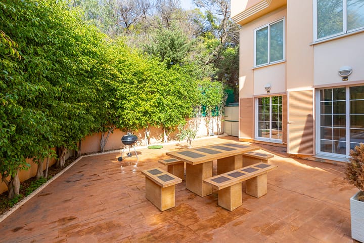 Het gedeelde chloorzwembad met afmetingen van 18 x 7 meter en een diepte van 1 tot 2,20 meter is perfect om af te koelen en van de zon te genieten. Het zwembad zorgt voor momenten van vermaak voor zowel volwassenen als kinderen, dankzij het 5×5 kinderbad met een diepte van 0,50 meter. Er is ook een buitendouche. In het appartement kunt u genieten van een privétuin omgeven door gazons, aangevuld met ligstoelen en een praktische mobiele barbecue die uitnodigt tot onvergetelijke buitenmomenten.
