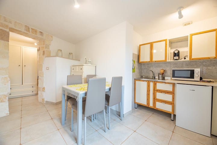 -Trullo met zwembad van 75 m2 in San Michele Salentino met 3 slaapkamers en 3 badkamers voor 11 personen.