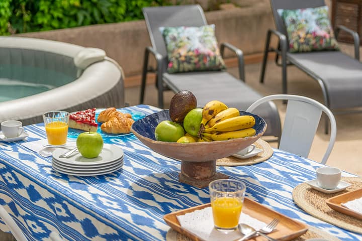 De buitenkant van het pand is ideaal om te genieten van het mediterrane klimaat. Op de binnenplaats vindt u verschillende ruimtes waar u met uw gezelschap kunt eten of drinken, ligstoelen waar u kunt zonnebaden en zelfs een jacuzzi waar u kunt afkoelen terwijl u ontspant. Er is ook een balkon en een boventerras vanwaar u een fantastisch uitzicht op de nabijgelegen bergen kunt bewonderen. Omdat het in het dorp ligt, heeft het huis directe buren.