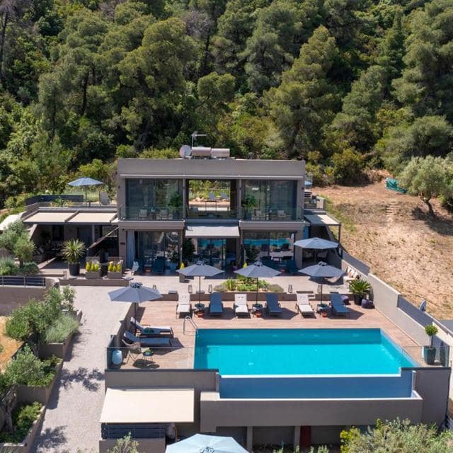 Het adresje is speciaal voor volwassenen. En eerlijk is eerlijk: stiekem is dat ook weleens fijn. Hier geen bommetjes in het zwembad, maar in rust een boek lezen op een ligbed en van het uitzicht over de baai genieten. Zalig toch? Wat ook zalig is, is het welkomstpakketje dat klaarligt op de kamer. Wat een ontvangst! Eigenaren Michalis en Annetta weten hoe ze hun gasten in de watten moeten leggen en daarom verwennen ze je graag met een flesje wijn en olijven bij aankomst. Zoals gezegd is dit adresje perfect om tot rust te komen: trek baantjes in het zwembad, doe een lesje yoga of trek je terug op je stijlvolle kamer. Heb je zin om eropuit te gaan? Ga dan met een boot de zee op en ontdek de grillige kustlijn en parelwitte stranden of bezoek badplaats Nikiti. Hier vind je leuke tavernes, bars, cafés en winkeltjes.