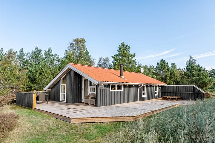 Vakantiehuis is geschikt voor 4 personen. De vakantiewoning heeft een oppervlakte van 75 m2 en is gebouwd in 1994. Het is toegestaan om 1 huisdieren mee te nemen. De vakantiewoning is uitgerust met warmtepomp. Vloerverwarming in alle stenen vloeren. De vakantiewoning heft Wasmachine. Vriezer capaciteit van 10 liter. Er is daarnaast houtkachel. Voor de kleintjes 1 stukken Kinderstoel.De vakantiewoning is gelegen op een 1500 m² groot natuural grond. Afstand tot de zee 500 m. Dichtstbijzijnde winkel 3400 m. Er is een golfbaan op een afstand van 1000 m. Bij de vakantiewoning hoort 50 m² terras. Daarnaast is er een 5 m² groot overdekt terras. Gereedschapsruimte. Parkeerplaats bij het huis.Er zijn in totaal 2 slaapkamers. De slaapplaatsen zijn als volgt verdeeld: 2 slaapplaatsen in tweepersoonsbed. 2 slaapplaatsen in eenpersoonsbedden. 1 slaapplaats op matras. 1 van deze slaapplaatsen bevindet zich in de open slaapzolder. Verder is kinderbed ter beschikking.De keuken is uitgerust met koelkast Er zijn 4 keramische kookplaten, heteluchtoven, magnetron en vaatwasser. Er is 1 badkamer met douchehok en 1 toilet.. Er is vloerverwarming in 1 badkamer. De sauna biedt de gelegenheid tot ontspanning.In de vakantiewoning is aanwezig televisie. Radio. Stereo-installatie. CD-speler. Tenminste 4 duitse zenders. Draadloos internet.