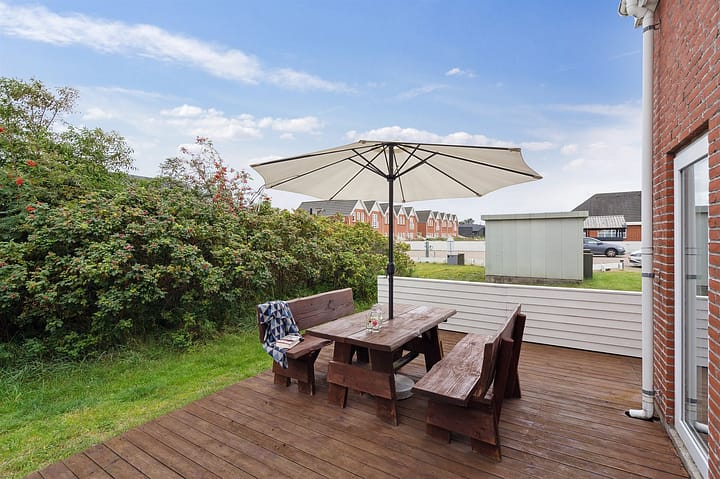 Vakantieappartement. is geschikt voor 6 personen. De vakantiewoning heeft een oppervlakte van 73 m2 en is gebouwd in 1987. In 2012 ondergingen de vakantiewoning een gedeeltelijke renovatie. Het is toegestaan om 3 huisdieren mee te nemen. De vakantiewoning heft Wasmachine. Vriezer capaciteit van 10 liter. De vakantiewoning is gelegen op een 200 m² groot natuural grond. Afstand tot de zee 2300 m.Afstand tot de waddenzee 500 m. Dichtstbijzijnde winkel 1100 m. Er is een golfbaan op een afstand van 100 m. Parkeerplaats bij het huis.Het gemeenschappelijk innenzwembad biedt de gelegenheid om heerlijk te spelen en gezellig samen te zijn. Er zijn in totaal 3 slaapkamers. De slaapplaatsen zijn als volgt verdeeld: 2 slaapplaatsen in tweepersoonsbed. 2 slaapplaatsen in eenpersoonsbedden. 2 slaapplaatsen in stapelbed.De keuken is uitgerust met koelkast Er is 4 elektrische kookplaten, bakoven, magnetron en vaatwasser. Er is 1 badkamer met douche en 1 toilet.In de vakantiewoning is aanwezig televisie. DVD-speler. Radio. CD-speler. Tenminste 4 deense zenders. 1-3 sweedse zenders. 1-3 noorse zenders. 1-3 duitse zenders. Draadloos internet.