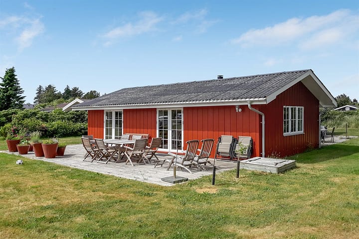 Vakantiehuis is geschikt voor 6 personen en 1 kinderen tot 3 jaar. De vakantiewoning heeft een oppervlakte van 102 m2 en is gebouwd in 1983. In 2008 ondergingen de vakantiewoning een gedeeltelijke renovatie. Het is toegestaan om 1 huisdieren mee te nemen. De vakantiewoning heft Wasmachine. Wasdroge. Vriezer capaciteit van 30 liter. Er is daarnaast houtkachel. Voor de kleintjes 1 stukken Kinderstoel.De vakantiewoning is gelegen op een 1200 m² groot natuural grond. Afstand tot de zee 1000 m. Dichtstbijzijnde winkel 1200 m. Bij de vakantiewoning hoort 50 m² terras. Zandbak. Barbecue. Parkeerplaats bij het huis.Er zijn in totaal 3 slaapkamers. De slaapplaatsen zijn als volgt verdeeld: 6 slaapplaatsen in tweepersoonsbedden. Verder is kinderbed ter beschikking.De keuken is uitgerust met koelkast Er zijn 4 keramische kookplaten, heteluchtoven, magnetron en vaatwasser. Er is 1 badkamer met douchehok en 1 toilet.. Er is vloerverwarming in 1 badkamer.In de vakantiewoning is aanwezig televisie. DVD-speler. Radio. CD-speler. Tenminste 4 deense zenders. 1-3 sweedse zenders. 1-3 noorse zenders. Tenminste 4 duitse zenders. 1-3 engelse zenders. Draadloos internet.