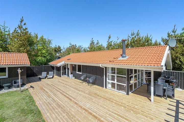 Vakantiehuis is geschikt voor 6 personen en 1 kinderen tot 3 jaar. De vakantiewoning heeft een oppervlakte van 87 m2 en is gebouwd in 2007. In 2021 ondergingen de vakantiewoning een gedeeltelijke renovatie. Het is niet toegestaan om huisdieren mee te nemen. De vakantiewoning is uitgerust met energiezuinige lucht-naar-lucht-warmtepomp. De vakantiewoning heft Wasmachine. Wasdroge. Vriezer capaciteit van 40 liter. Er is daarnaast houtkachel. Voor de kleintjes 1 stukken Kinderstoel.De vakantiewoning is gelegen op een 1400 m² groot aangelegde tuin. Afstand tot de zee 900 m. Dichtstbijzijnde winkel 1000 m. Er is een golfbaan op een afstand van 5000 m. Bij de vakantiewoning hoort 20 m² terras. Daarnaast is er een 10 m² groot overdekt terras. Barbecue. Het huis heeft een stopcontact voor het opladen van een elektrische auto. Oplaadstekker type 2. Met 11 kW-laadvermogen. Parkeerplaats bij het huis.Er zijn in totaal 3 slaapkamers. De slaapplaatsen zijn als volgt verdeeld: 4 slaapplaatsen in tweepersoonsbedden. 2 slaapplaatsen in stapelbed. 2 slaapplaatsen in slaapbanken (tweepersoons). Verder is kinderbed ter beschikking.De keuken is uitgerust met koelkast Er zijn 4 keramische kookplaten, heteluchtoven en vaatwasser. Er is 1 badkamer met douchehok en 1 toilet.. Er is vloerverwarming in 1 badkamer. De sauna biedt de gelegenheid tot ontspanning.In de vakantiewoning is aanwezig televisie.1 Chromecast.1 Bluetooth-speaker. 1-3 deense zenders. 1-3 sweedse zenders. 1-3 noorse zenders. 1-3 duitse zenders. Draadloos internet.