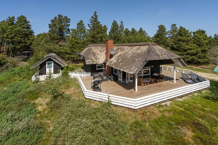Vakantiehuis is geschikt voor 6 personen en 1 kinderen tot 3 jaar. De vakantiewoning heeft een oppervlakte van 81 m2 en is gebouwd in 1992. In 2011 ondergingen de vakantiewoning een gedeeltelijke renovatie. Het is niet toegestaan om huisdieren mee te nemen. De vakantiewoning is uitgerust met warmtepomp. De vakantiewoning heft Wasmachine. Wasdroge. Vriezer capaciteit van 10 liter. Er is daarnaast houtkachel. Voor de kleintjes 1 stukken Kinderstoel.De vakantiewoning is gelegen op een 2500 m² groot natuural grond. Afstand tot de zee 2900 m. Dichtstbijzijnde winkel 2700 m. Schommel. Zandbak. Speelhuisje. Parkeerplaats bij het huis.Er zijn in totaal 3 slaapkamers. De slaapplaatsen zijn als volgt verdeeld: 4 slaapplaatsen in tweepersoonsbedden. 2 slaapplaatsen in eenpersoonsbedden. 2 slaapplaatsen in stapelbed. Verder is kinderbed ter beschikking.De keuken is uitgerust met koelkast Er is 4 elektrische kookplaten, bakoven en vaatwasser. Er is 1 badkamer met douche en 1 toilet.. Er is vloerverwarming in 1 badkamer. De sauna biedt de gelegenheid tot ontspanning.Het binnenbubbelbad (vulwater) biedt ontspanning aan 2 personen.In de vakantiewoning is aanwezig televisie. DVD-speler. Stereo-installatie. CD-speler. Tenminste 4 deense zenders. Tenminste 4 duitse zenders. Draadloos internet.