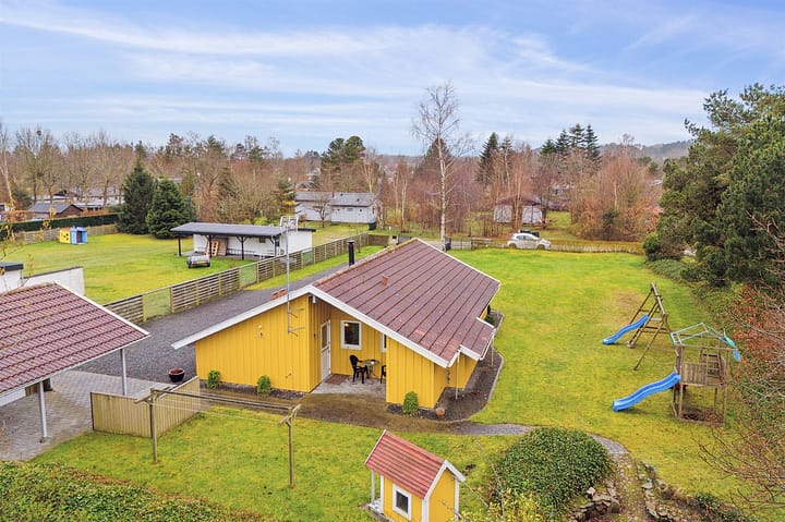 Vakantiehuis is geschikt voor 7 personen en 1 kinderen tot 3 jaar. 3 van de slaapplaatsen is alleen geschikt voor grotere kinderen (4-11 jaar). De vakantiewoning heeft een oppervlakte van 89 m2 en is gebouwd in 1998. In 2019 ondergingen de vakantiewoning een gedeeltelijke renovatie. Het is niet toegestaan om huisdieren mee te nemen. De vakantiewoning is uitgerust met energiezuinige lucht-naar-lucht-warmtepomp. Vloerverwarming in alle stenen vloeren. De vakantiewoning heft Wasmachine. Wasdroge. Vriezer capaciteit van 20 liter. Er is daarnaast houtkachel. Voor de kleintjes 1 stukken Kinderstoel.De vakantiewoning is gelegen op een 1326 m² groot natuural grond. Afstand tot de zee 400 m. Dichtstbijzijnde winkel 5000 m. Bij de vakantiewoning hoort terras. Daarnaast is er een overdekt terras. Schommel. Speelhuisje. Speeltoren. Glijbaan.Vuurplaats. Barbecue. Het huis heeft een stopcontact voor het opladen van een elektrische auto. Parkeerplaats bij het huis.Er zijn in totaal 4 slaapkamers. De slaapplaatsen zijn als volgt verdeeld: 4 slaapplaatsen in tweepersoonsbedden. 3 slaapplaatsen in eenpersoonsbedden. Verder is kinderbed ter beschikking.De keuken is uitgerust met koelkast Er zijn 4 keramische kookplaten, heteluchtoven, magnetron en vaatwasser. Er is 1 badkamer met douchehok en 2 toiletten, waarvan 1 gastentoilet Er is vloerverwarming in het gastentoilet.. Badkuip. De sauna biedt de gelegenheid tot ontspanning.In de vakantiewoning is aanwezig 2 televisies.Tv via streaming. Bluray-speler. Tenminste 4 deense zenders. 1-3 sweedse zenders. 1-3 noorse zenders. 1-3 duitse zenders. Draadloos internet.