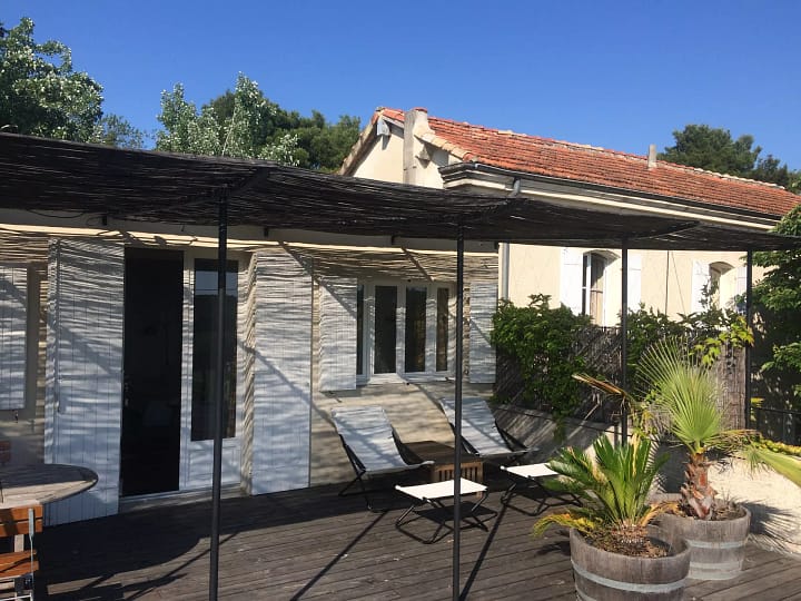 Vakantiehuis Nid de Fleur is in 2014 totaal gerestaureerd en ligt in het oudste (350 jaar) gedeelte van het domein. Je hebt een fenomenaal prachtig zicht vanuit een groot houten terras met pergola op het dorpje Visan, de Mont Ventoux en de Vallei van de Rhône.