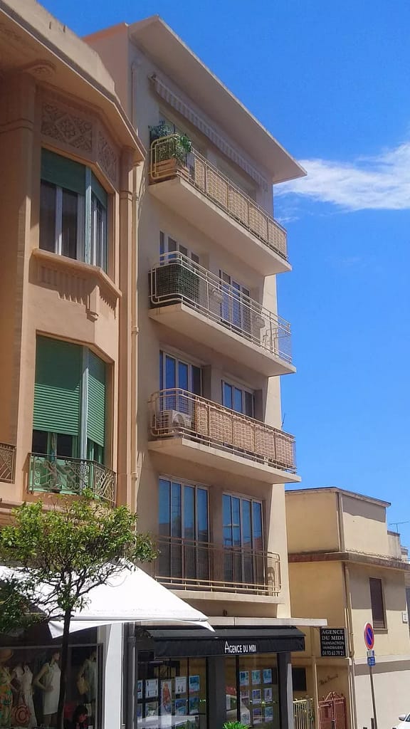 Via een afgesloten hek kom je bij de voordeur van het gebouw. Op de benedenverdieping zit een makelaarskantoor. Op de 3e etage via de trap bereikbaar, komt je bij het appartement. Gang met links een kleine slaapkamer met een eenpersoonsbed van 90×200 cm. Rechts is de badkamer met bad/douche, wastafel, wasmachine en droger. Aan het eind van de gang is rechts een slaapkamer met een 2 persoons bed 140×200 cm, en inbouwkasten. Links is de leefruimte met volledig ingerichte keuken, eettafel en loungehoek. De grote slaapkamer en leefruimte geven toegang tot het terras met uitzicht over de daken en tussenblikjes op de haven en middelandse zee.