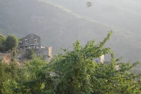 Typisch traditioneel Corsicaans huis, gebouwd op een rots, met rondom terrassen en adem-benemende vergezichten. We bevinden ons in de bergen aan de oostkust (ongeveer 1 uur rijden van de havenplaats Bastia en 45 minuten van het vliegveld Poretta ). De weg slingert zich vanuit de vlakte omhoog gedurende 14 km om tenslotte te eindigen in Ferlaya (commune de Monte) in de nog traditionele Castagniccia op 450 m hoogte in de bergen. De auto wordt op het pleintje geparkeerd en te voet dient een afstand van circa 100 meter te worden afgelegd. Het is derhalve niet geschikt voor rolstoel houders. Gezien de vele terrassen achten wij dit huis minder geschikt voor kleine kinderen; wel zijn verschillende toegangen tot de terrassen voorzien van hekjes. Het appartement is m.n. goed voor 2 volwassenen