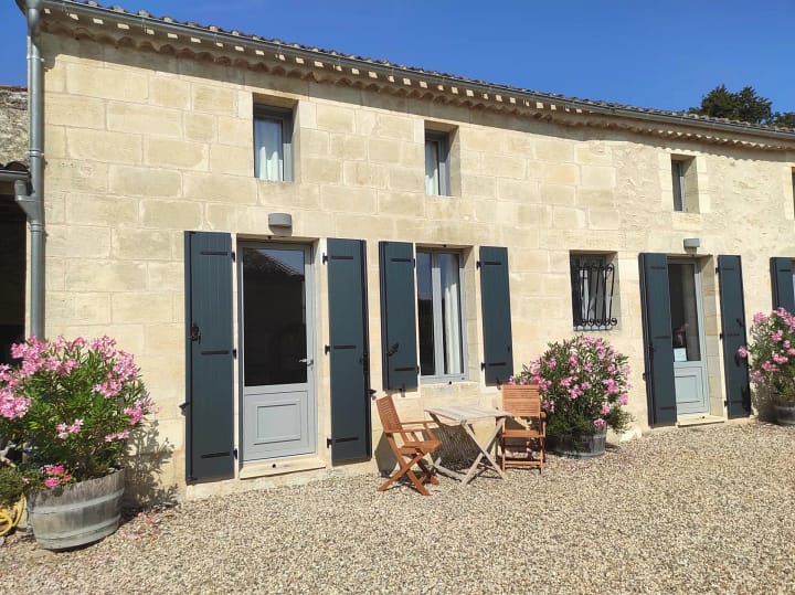 Het vakantiehuis ligt op een wijngaard in het Bordeaux wijngebied, die nog functioneert. De ruimte gite is met liefde verbouwd in de oude wijnboerderij, in het glooiende landschap van de wijngaarden van de Gironde. Je hebt hier prachtig uitzicht over de wijngaarden en je kunt heerlijke wandelingen over het terrein maken of ergens gaan zitten schilderen of lezen. De perfecte setting om te genieten van de eigen producten en wijnen van de wijngaard.