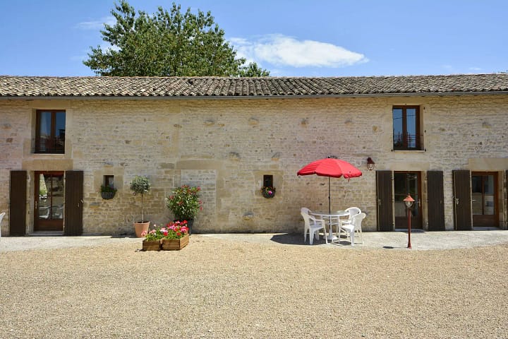 l’Hirondelle, een karaktervol vakantiehuis, wordt bereikt vanaf een breed pad vanaf de parkeerplaats. Je krijgt een gevoel van ruimte als je door de grote openslaande deuren het atrium binnenloopt, waarvan de vloer betegeld is, met een lambrisering en originele dakbalken en een overloop. De woonkamer maakt een ruimtelijke indruk met een keuken en een eethoek waar plaats is tot 8 personen. De keuken is volledig ingericht met een koel-vriescombinatie, wasmachine, magnetron en gaskooktoestel.