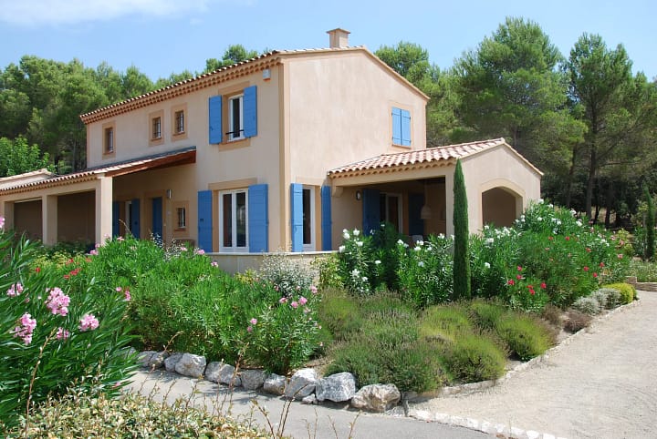 Comfortabele, luxe villa op groot terrein van 1350 m2, meerdere terrassen in zon en/of schaduw, met prachtig uitzicht over de vallei.