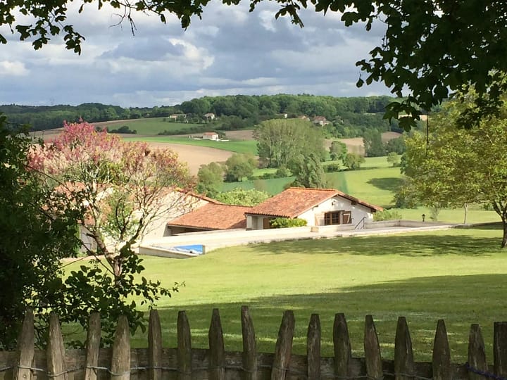 Vrijstaande dubbele vakantiewoning in schitterende landelijke omgeving met fantastisch uitzicht in de Perigord Vert (Dordogne). Hier vindt u rust, ruimte. Een royaal privé-zwembad op groot eigen terrein staat u te wachten. Nog geen 15 minuten van Aubeterre-sur-Dronne, een van de mooiste dorpjes in Frankrijk, en het dorpje St. Severin. Een luxe golfclub bevindt zich op nog geen 10 minuten rijden van uw vakantiehuis. Dit autentiek Frans vakantie huis is comfortabel en sfeervol ingericht en is geschikt voor 12 personen. Door de ligging en opzet, biedt dit vakantiehuis naast ruime gelegenheid om met elkaar te verblijven, vele plekjes om in alle privacy te genieten van de rust, de ruimte en de sfeer. Kortom de ideale setting voor een vakantie met familie, groepen vrienden of een aantal koppels.