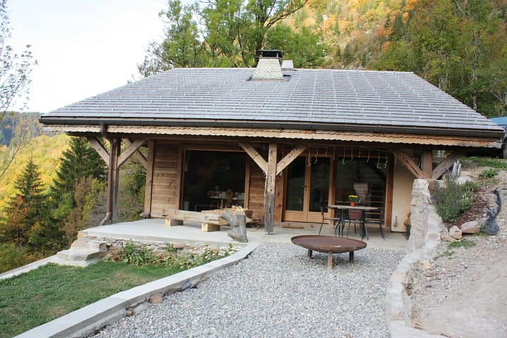 Chalet Alpage op 1200m hoogte in de Savoie stijl ,volledig zuid gericht voorzien van alle comfort . 2 slaapkamers met inloopdouche en 1 slaapkamer met aparte douche, met gezond bronwater.