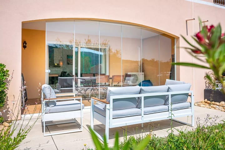 Het appartement is gesitueerd in Zuid-Frankrijk aan de Côte d’Azur op het prachtige Domaine du Golf van Roquebrune-sur-Argens. Dit gelijkvloerse appartement biedt een prachtig uitzicht op de Roquebrune. De indeling omvat een entree, een hal, een toilet, inbouwkasten, een lichte woonkamer met een open keuken voorzien van alle benodigde apparatuur, 2 slaapkamers, een badkamer met ligbad en een douchekamer. Daarnaast beschikt het over twee terrassen, zowel een overdekt terras als een zonneterras.