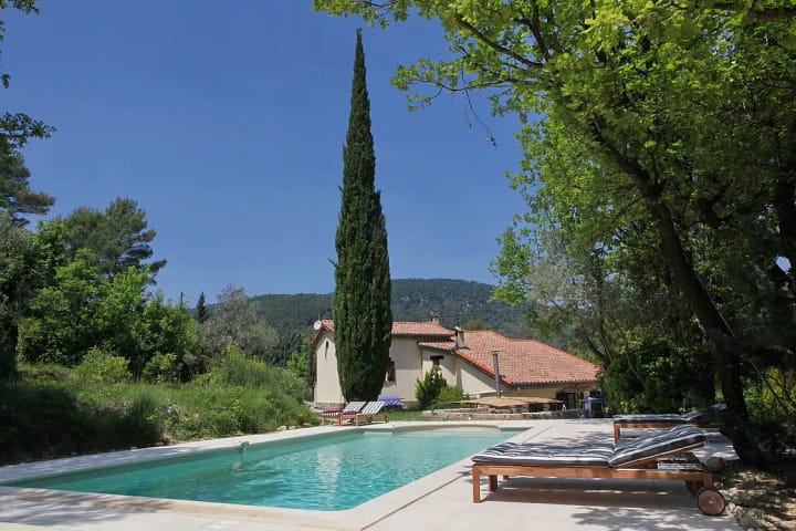 Sfeervolle villa met romantische cabanon, privé zwembad en grote Provençaalse tuin van ca. 8500 vierkante meter. Uniek is het prachtige uitzicht op Claviers, een van de meest authentieke Villages Perchés in de Provence. Het hoofdhuis telt drie tweepersoons slaapkamers, twee badkamers, ruime keuken met moderne apparatuur en gezellige woonkamer met houtkachel. Hoger in de tuin staat een apart huisje, de cabanon, met tweepersoonsbed en eigen sanitair. Verder: speelgoed, tafeltennistafel, trampoline en twee mountainbikes (tegen bijbetaling). Het huis is geschikt voor acht volwassenen, plus één baby. De ligging van het vakantiehuis in Zuid-Frankrijk, tussen Middellandse Zee en Gorges du Verdon maakt het bovendien ideaal voor uitstapjes. Naar mooie dorpen, topbestemmingen als Nice, Cannes en St Tropez, de parfumstad Grasse en andere bezienswaardigheden in de Provence. Daarna is het telkens weer heerlijk om terug te keren bij de rust en kalmte van het vakantiehuis en charmant Claviers.