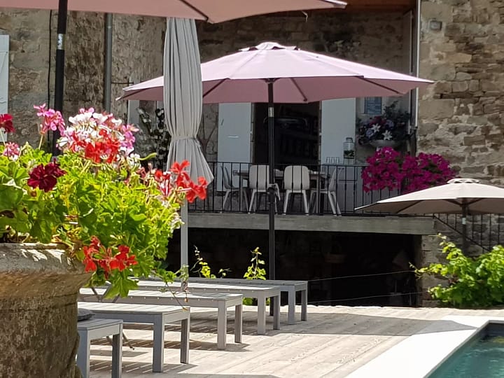 Het vakantiehuis Grand Paradis van Art en Route is gelegen in de Franse Ardèche, gemeente Chassiers nabij Lagentiere. De zeer ruime gite is voorzien van alle moderne gemakken: moderne keuken, badkamer met douche toilet en wastafel. Een hout gestookte kachel maakt het huiselijke comfort compleet. De gite beschikt over een slaapkamer met toegang tot de badkamer. In een apart gedeelte van de woonruimte staat nog een twee persoons bed waardoor de gite bewoond kan worden door vier personen. De gite geeft uitzicht op het zwembad en de grote tuin/moestuin, Op het ruime terras van de gite staat een grote tafel waar kan worden gegeten. In de hangstoel is het heerlijk relaxen. Bewoners van de gite kunnen tevens genieten van de diverse terrassen rondom het huis.