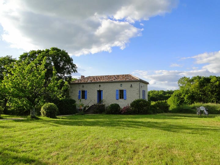 De gîte beschikt over een ruime woonkamer met dubbele tuindeuren die openen op een goed beschut deel van de tuin met volkomen privacy. De woonkamer geeft met een afstapje via een kleine bijkamer toegang tot een vroegere stal, nu getransformeerd tot een heel ruime woonkeuken van circa 40 m2 die geheel ‘dans son jus’ is gebleven. Met een ander afstapje sluit de woonkamer aan op een korte gang naar de badkamer, een ruime slaapkamer van circa 24 m2 met daarin drie eenpersoonsbedden en, door middel van weer een ander afstapje, een slaapkamer van circa 16 m2 met daarin een tweepersoonsbed. Deze beide slaapkamers geven door middel van dubbele tuindeuren toegang tot het ruime eigen terrein van een hectare. De derde slaapkamer (circa 9 m2) sluit direct aan op de woonkamer en beschikt over een tweepersoons bed. Alle ruimtes zijn in beginsel ‘gelijkvloers’, maar de in het terrein aanwezige niveauverschillen zijn ook in het huis terug te vinden in die zin, dat een aantal stenen trapjes in de woning aanwezig is om de niveauverschillen te overbruggen. Daarom is het huis niet heel geschikt voor voor mensen die zijn aangewezen op het gebruik van een rolstoel of rollator. Het huis is in essentie L vormig en vormt met een ander huis een beschutte en intieme binnenplaats die is gericht naar het zuiden en daarom volop ‘in het zonnetje’ staat. Dat andere huis is bij ons zelf in gebruik, maar nooit tijdens de verhuur van het vakantiehuis: wij verblijven dan in een ander huis in een nabijgelegen middeleeuws stadje . Uw privacy en het exclusieve gebruik van het zwembad zijn dan ook volledig gegarandeerd. Wij hebben de onrust van wifi, tv, schotelantennes en kabelaansluiting uit ons vakantiehuis geweerd en om die reden is de gîte vast niet voor iedereen geschikt….