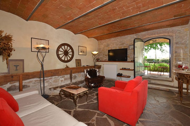 Het huis met een exclusieve loggia bevindt zich in Chianti Classico, bekend om zijn gerenommeerde wijnen. Met uitzicht op het oude klooster van Badia a Passignano, ligt het huis op korte rijafstand van San Casciano, waar je cafés, restaurants en culturele locaties vindt. Dagtochten naar Florence, Siena en San Gimignano zijn gemakkelijk te bereiken. De dichtstbijzijnde bar en restaurant zijn op 5 minuten rijden van het huis, met ook golfbanen in de nabijheid. De luchthaven van Florence is 40 km verderop, en de luchthaven van Pisa is 82 km verwijderd.
