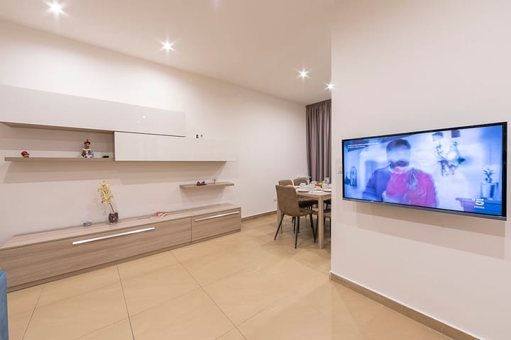 Dit moderne appartement biedt plaats aan maximaal 6 personen en bevindt zich op de eerste verdieping (bereikbaar met de lift), en biedt een rustig toevluchtsoord na het verkennen van de levendige straten en historische bezienswaardigheden van Catania. De open woonkamer is stijlvol ingericht met een bank en een smart-tv, terwijl de aangrenzende eethoek en keuken goed zijn uitgerust met een kookplaat, oven, magnetron, koelkast/vriezer en koffiezetapparaat. Schoonmaakmiddelen zijn ook aanwezig. Grote glazen deuren vanuit de eethoek openen naar een eigen balkon.