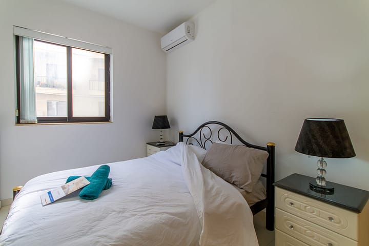 Qawra ligt aan de noordoostkust van Malta, op 18 minuten lopen van de naburige stadjes St. Paul’s Bay en Bugibba. Het Nationale Aquarium, Qawra Point Beach en Bugibba Beach (perfect om van de zon te genieten) liggen beide op 15 minuten lopen van het appartement. Voor geschiedenisliefhebbers is de indrukwekkende Bugibba Battery ook 15 minuten lopen en biedt een blik op het militaire verleden van Malta. Een korte rit (20 minuten) brengt je naar de oude Megalithische Tempels van Malta, een UNESCO Werelderfgoedlocatie, en naar de historische stad Mdina.