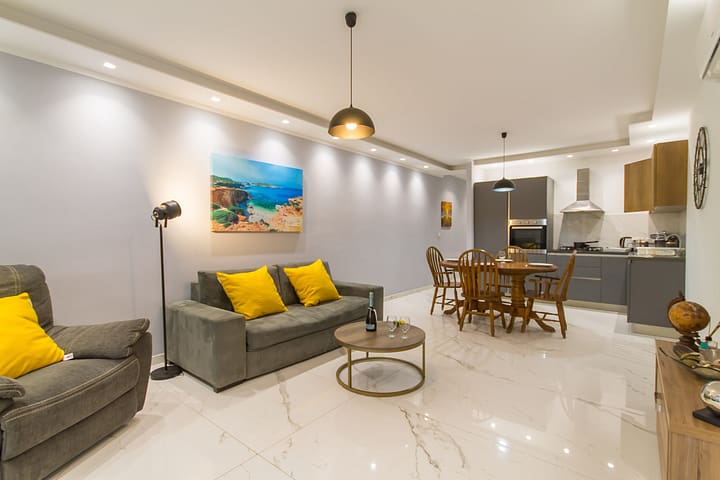 Het vakantieappartement ligt dichtbij Bu_ibba en Salina, een populaire toeristenplek met veel bars, feestlocaties en restaurants. De stad is het thuis voor vele watersportactiviteiten, inclusief bananenboot-, speedboot- en jetski-ritten, evenals kajakken, snorkelen en duiken. Bovendien kunt u in 10 minuten lopen het Nationaal Aquarium bereiken. De dichtstbijzijnde supermarkt is naast de deur, terwijl de dichtstbijzijnde bushalte op 5 minuten lopen van het vakantiehuis is. Malta Airport ligt op 40 minuten rijden.