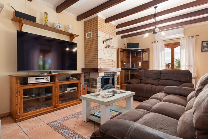 Geniet van een rustig verblijf in deze fantastische villa, perfect voor 10 gasten om te genieten van het warme Mallorcaanse klimaat. Omgeven door platteland en natuur nodigt het idyllische en vredige exterieur van dit huis je uit om een duik te nemen in het privé chloorzwembad in de tuin, dat 10 meter lang, 5 meter breed en tussen de 1,10 en 2,3 meter diep is. Rondom het zwembad zijn er ligstoelen om te zonnebaden en verschillende parasols om onder te rusten. De uitgestrekte, goed onderhouden tuin met natuurlijk gras is ideaal voor kinderen om op te spelen. Voordat je naar binnen gaat, is er ook een barbecue en een gemeubileerde veranda waar je kunt genieten van heerlijke gegrilde maaltijden.